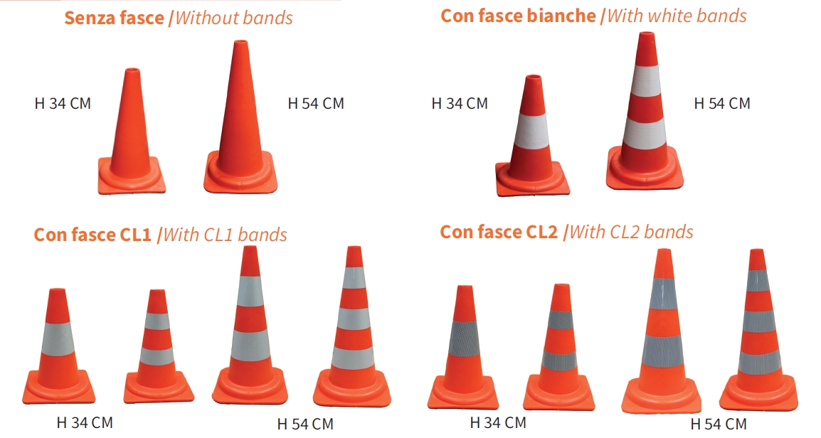 S2203PECL1 Polythene cone – 2 reflective bands – CL. 1 54 cm 10,5 cm 0,90 kg 10 pcs 24/28 boxes